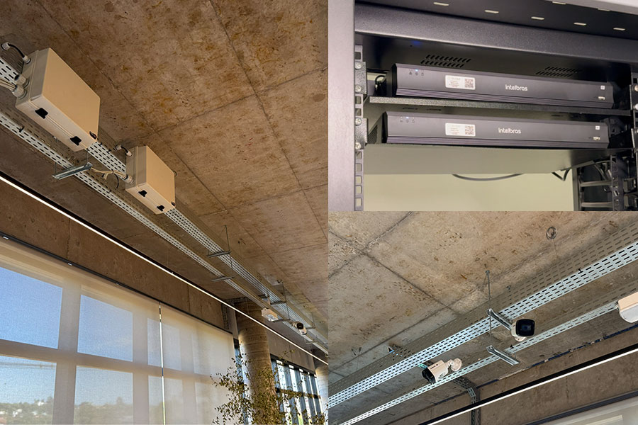 Um dos pilares do projeto foi a implantação de um moderno sistema de videomonitoramento IP Intelbras, composto por 64 câmeras de alta resolução, estrategicamente distribuídas por todo o prédio administrativo e áreas externas.